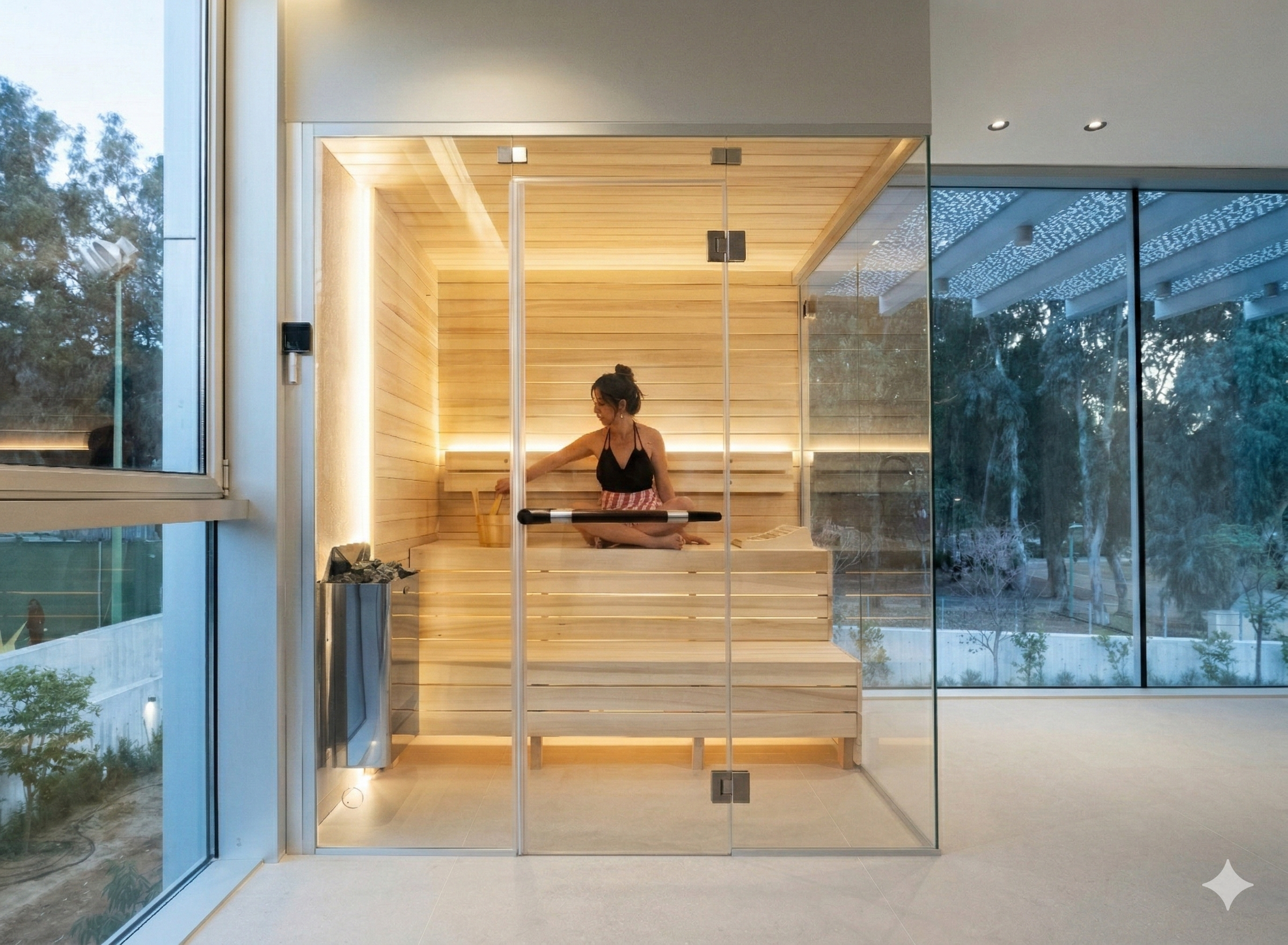 The project presented a unique challenge: transforming a functional wellness element into a seamless architectural statement within a high-end villa. While saunas are often tucked away, this project sought to bring the experience to the forefront through meticulous planning and a sophisticated material palette. Using the tools of precision interior architecture, we created a space that balances transparency and intimacy. The design features a striking Travertine stone wall paired with premium Aspen wood, powered by a Harvia heating system and wrapped in advanced insulated glazing. Every detail, from the integrated architectural lighting to the clean drywall connections, was executed with a "zero-compromise" approach to ensure both technical perfection and the client's vision of a serene home sanctuary.