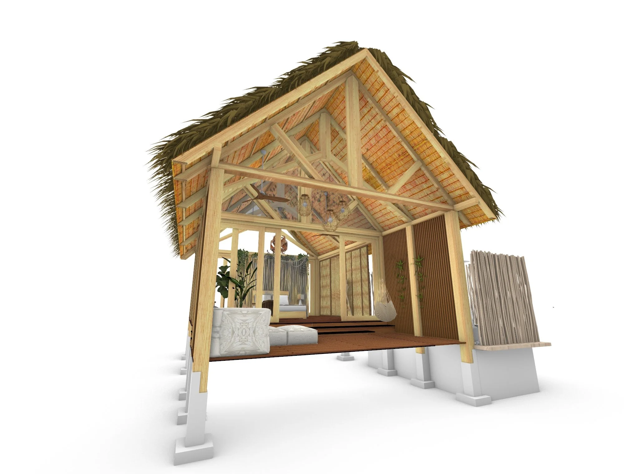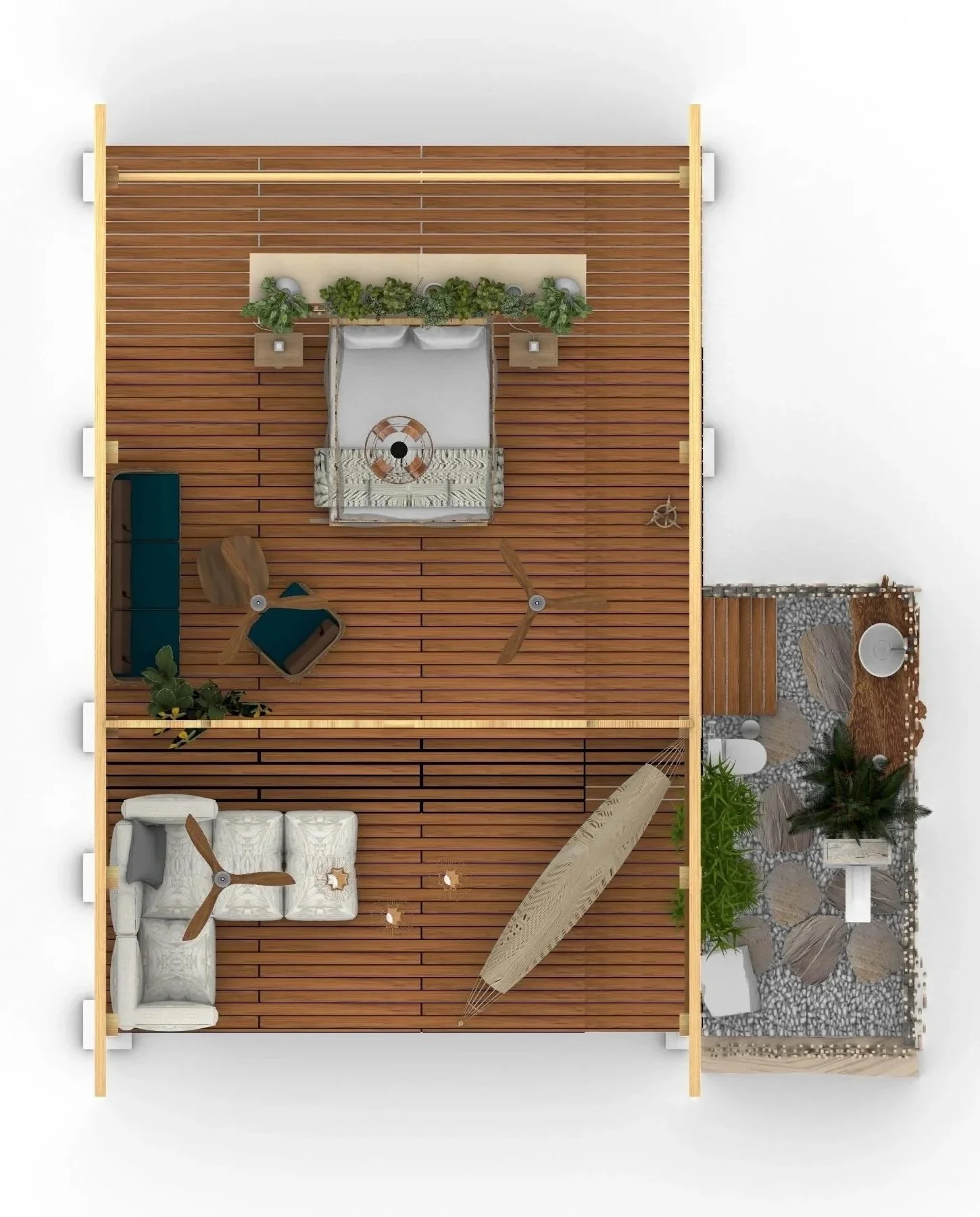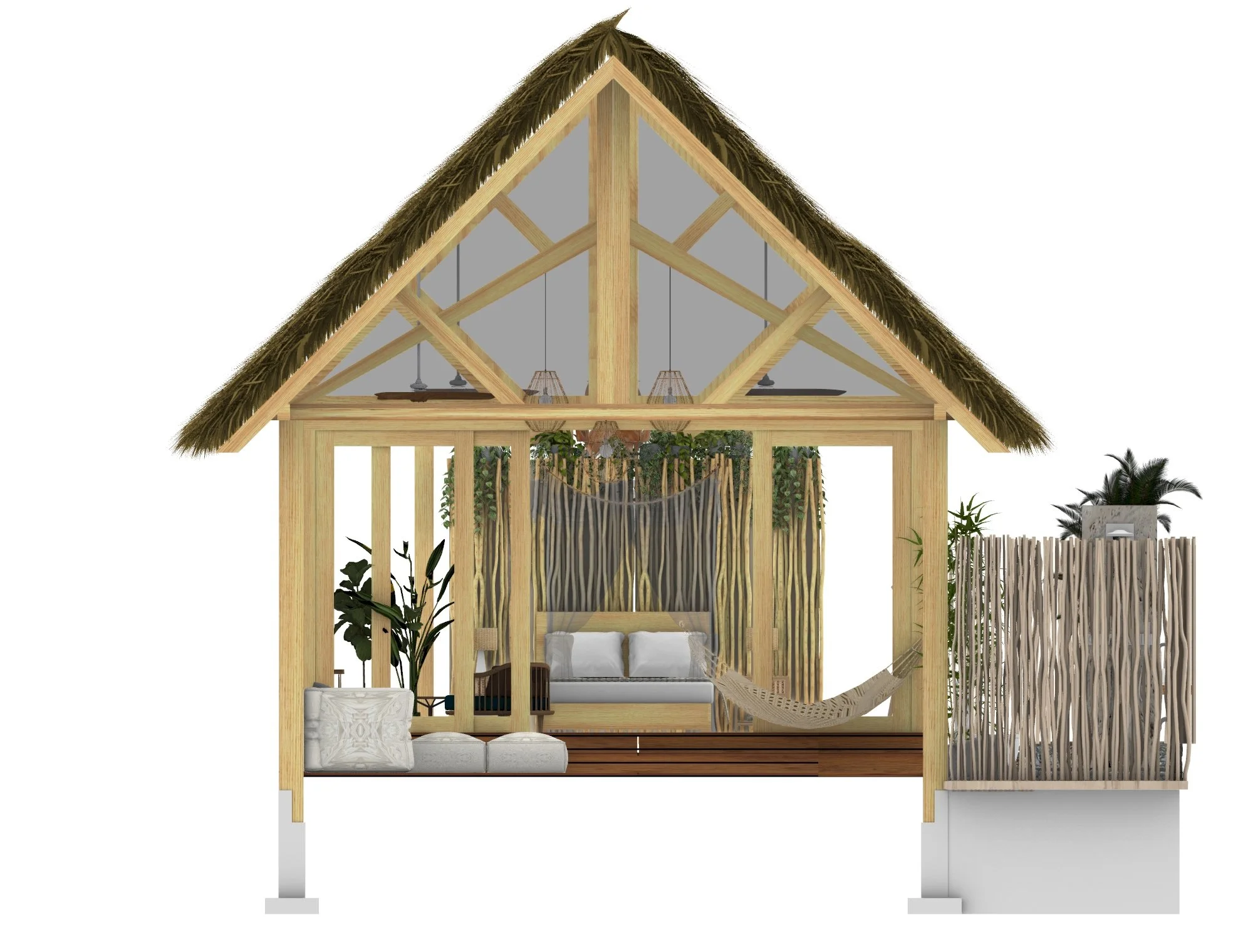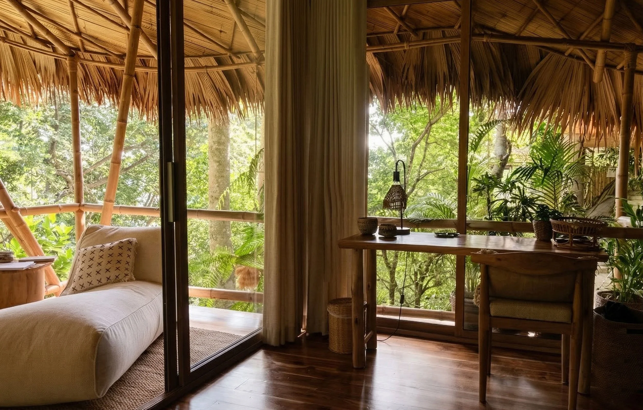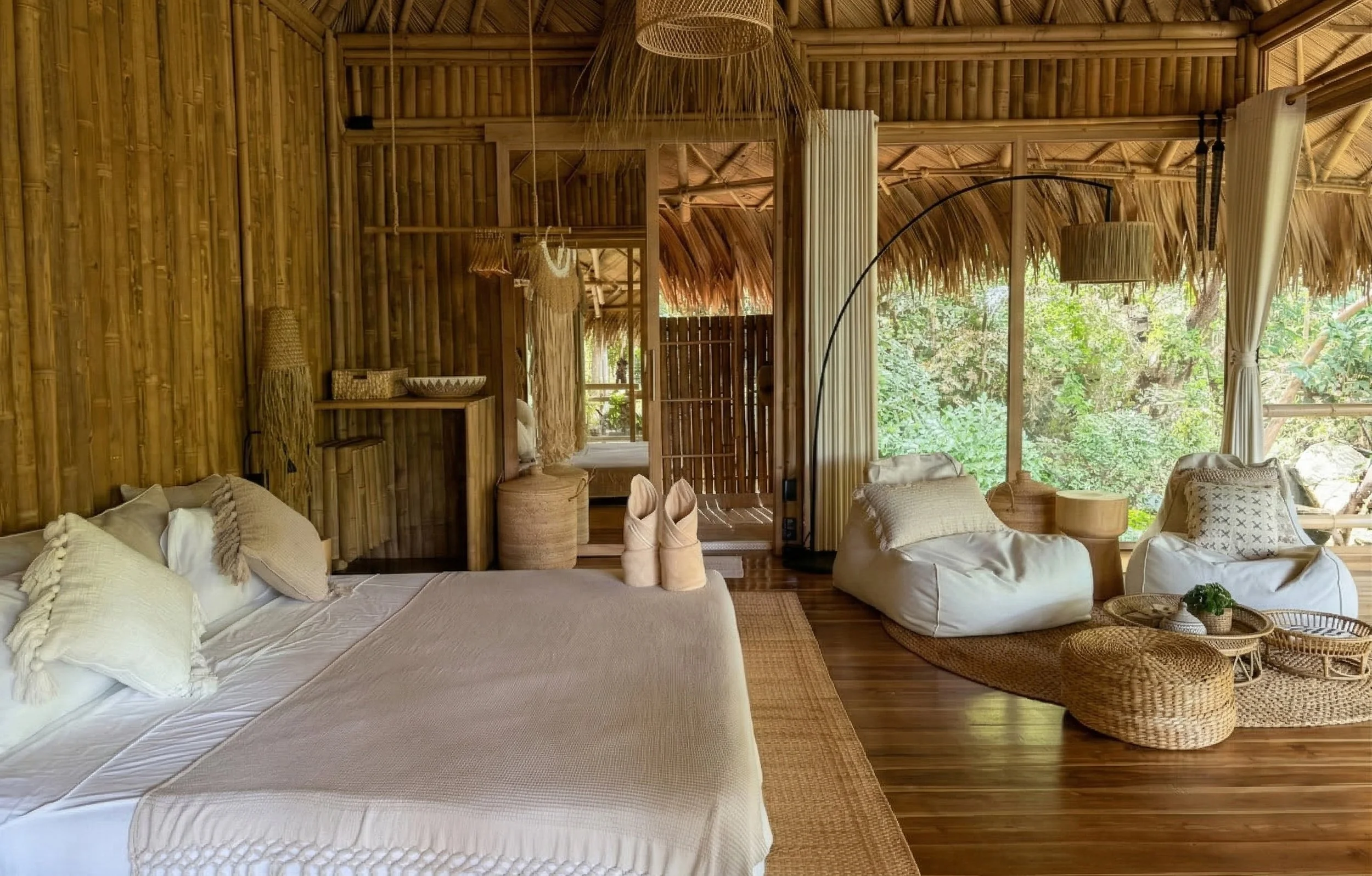 The concept focused on dissolving the boundary between interior and exterior space. enhancing the connection to nature. Large terraces, outdoor showers, and expansive window openings create an immersive experience of sleeping inside feeling fully surrounded by the jungle.