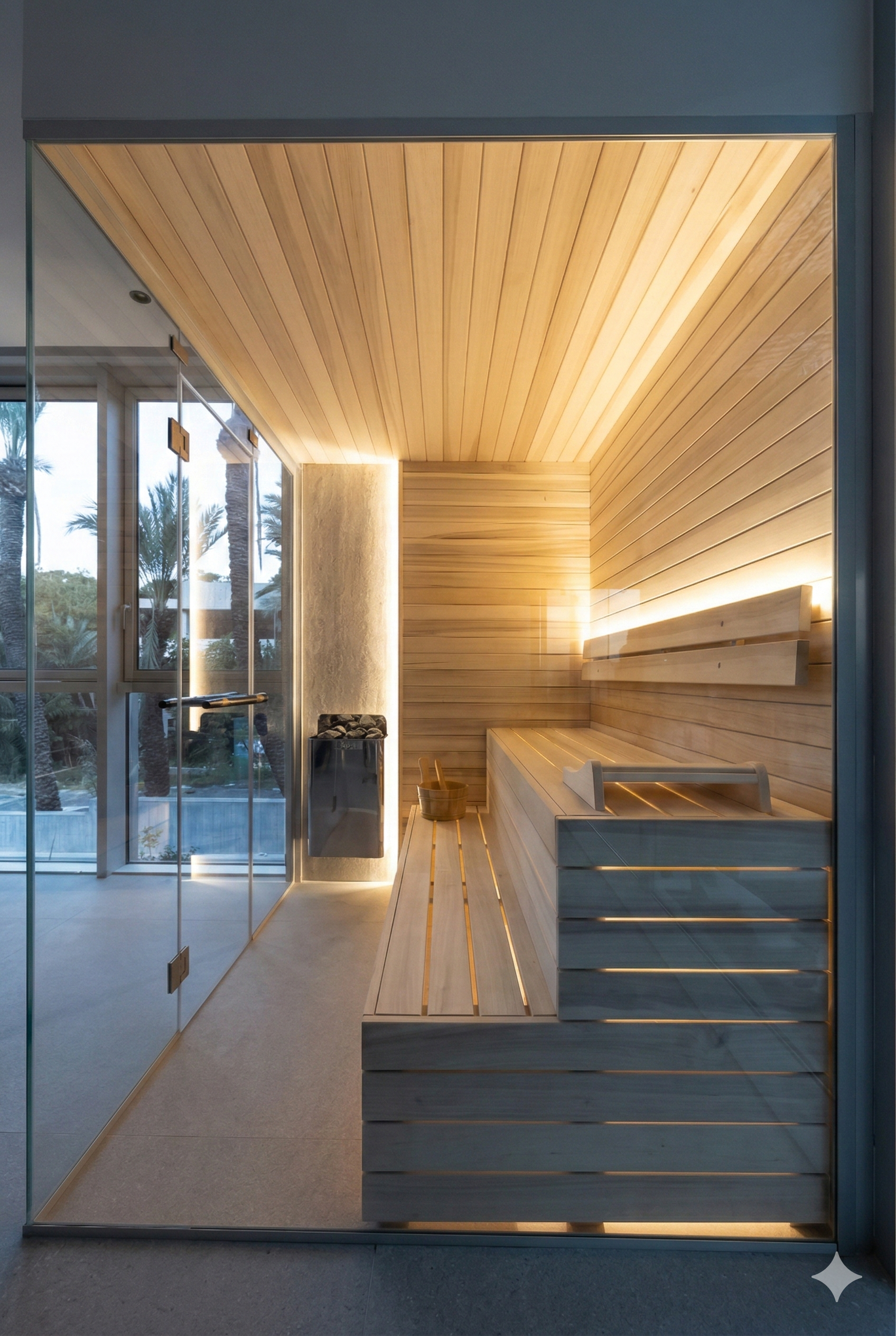 The project presented a unique challenge: transforming a functional wellness element into a seamless architectural statement within a high-end villa. While saunas are often tucked away, this project sought to bring the experience to the forefront through meticulous planning and a sophisticated material palette. Using the tools of precision interior architecture, we created a space that balances transparency and intimacy. The design features a striking Travertine stone wall paired with premium Aspen wood, powered by a Harvia heating system and wrapped in advanced insulated glazing. Every detail, from the integrated architectural lighting to the clean drywall connections, was executed with a "zero-compromise" approach to ensure both technical perfection and the client's vision of a serene home sanctuary.