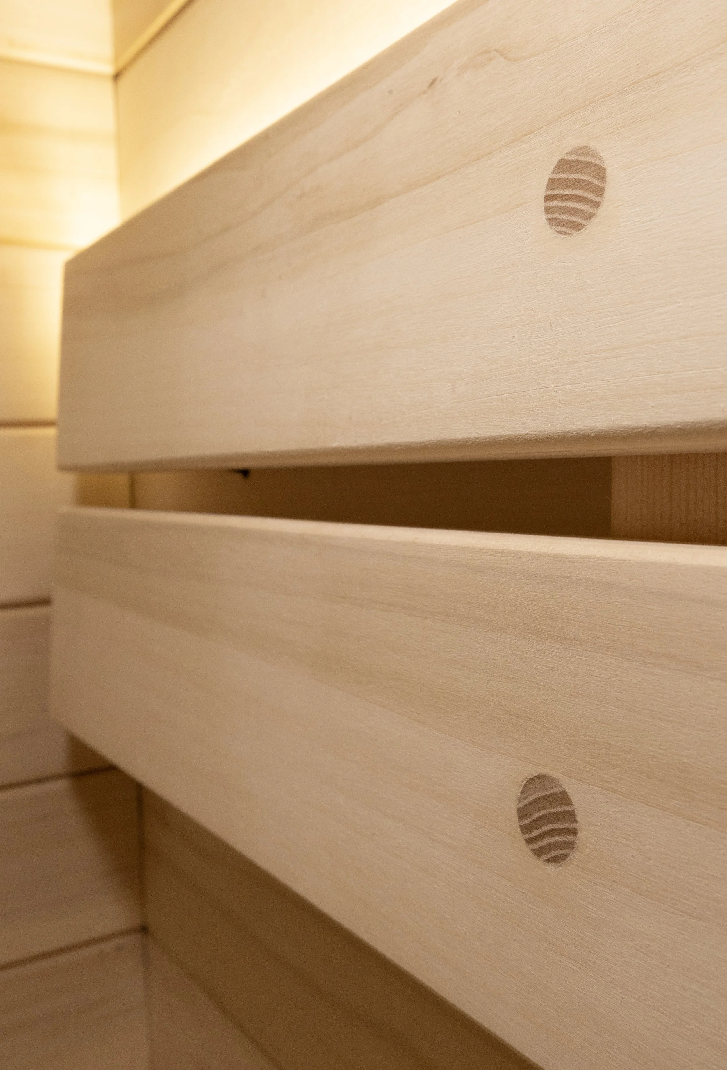 Integrated into the master suite of the house, this sauna was designed as a sculptural anchor rather than a hidden utility. The planning focuses on "living with the space," ensuring that the dialogue between the bedroom and the sauna creates constant visual interest. By blending the raw texture of Travertine stone with the warmth of Aspen wood behind seamless insulated glazing, we achieved a sense of geometric serenity that enhances the room's atmosphere even when the sauna is not in use.